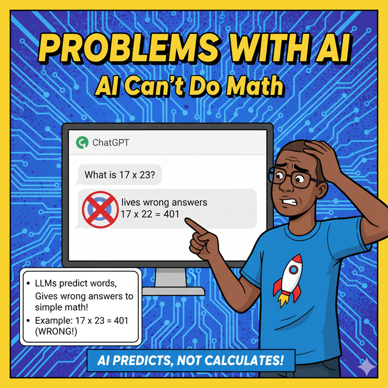 This means that when you ask an AI to add numbers or perform a calculation, it’s not actually reasoning through the math; it’s predicting what a correct-looking answer might be. The result can sound perfectly confident and well-formatted, but still be entirely wrong. This tendency to produce plausible but incorrect results highlights one of AI’s biggest limitations: it excels at language, not logic or precision.