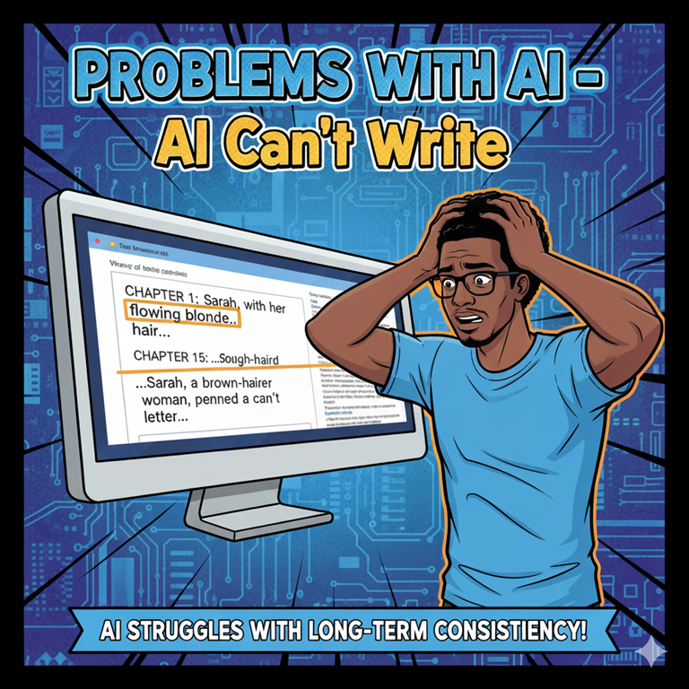 Another big challenge is writing fictional stories. AI struggles with long-form coherence and consistency across an extended narrative.